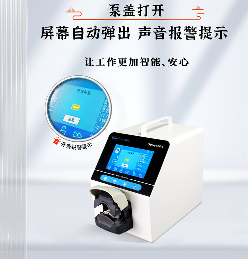 當(dāng)泵蓋打開時(shí),ipump4ZF-B+FT15會自動(dòng)彈出屏幕并進(jìn)行聲音報(bào)警提示。這一設(shè)計(jì),旨在提醒用戶注意泵蓋狀態(tài),保證使用過程的安全性。不用再擔(dān)心因忘記關(guān)閉泵蓋而導(dǎo)致的意外情況。