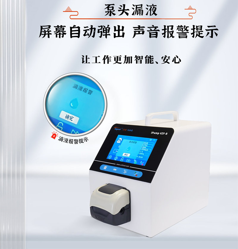 如果泵頭漏液,不僅浪費(fèi)了寶貴的液體資源,還可能對使用環(huán)境造成損害。ipump4ZF-B+FT15漏液報(bào)警功能,能夠及時(shí)檢測到漏液情況,并通過彈窗和聲音的組合方式進(jìn)行報(bào)警提示,幫助用戶及時(shí)采取措施,避免不必要的損失。