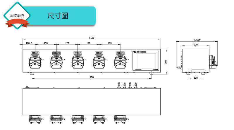 1.灌裝系統由4組基本通道(可擴展至32通道),一臺控制器組成,可安裝YZ15、YZ25泵頭