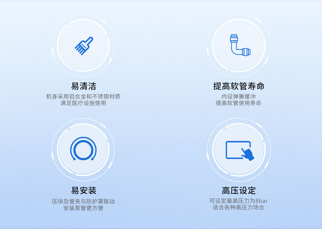 3.壓塊及管夾與防護(hù)罩聯(lián)動(dòng)安裝軟管更方便;