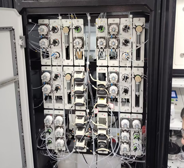 某知名藥企曾長期受此困擾。傳統蠕動泵在長時間運轉后,蠕動泵軟管疲勞或安裝不當極易引發微滲漏,而操作人員往往在大量粘合劑污染物料后才察覺。為解決這一難題,該企業引入了思諾大面積蠕動泵濕法工藝多參數在線智能分析系統,其中核心組件——具備漏液報警功能的智能蠕動泵,成為工藝升級的關鍵。