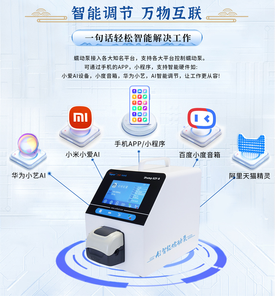 ? ? ? AI智能蠕動(dòng)泵的另一個(gè)重要特點(diǎn)是其支持萬(wàn)物互聯(lián)。用戶可以通過(guò)手機(jī)APP、小程序以及智能硬件設(shè)備如小愛設(shè)備、小度音箱、華為小藝等,輕松接入各大知名平臺(tái),并進(jìn)行智能控制。這使得工作變得更加從容,讓人們能夠隨地實(shí)現(xiàn)萬(wàn)物互聯(lián)的智能調(diào)節(jié)。