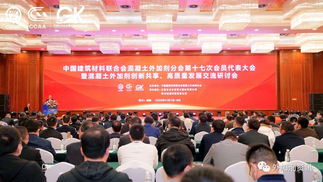 2020年11月7日上午,中國建材聯(lián)合會混凝土外加劑分會第十七次會員代表大會在美麗蓉城——成都盛大開幕,會場內(nèi)座無虛席,氣氛隆重而熱烈。