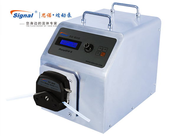 超聲波清洗消毒機工作時,需要自動定量添加和注入酶、清洗劑和消毒液。添加的清洗助劑具有用量小、添加精度高、有一定腐蝕性等特點,是普通泵所不能很好滿足的。思諾生產(chǎn)的一款精密蠕動泵作為一種步進電機蠕動泵,具有輸送精度高、耐腐蝕、截止閥等特殊性能,能夠很好地滿足超聲波清洗消毒機中添加清洗添加劑的特點和需求。