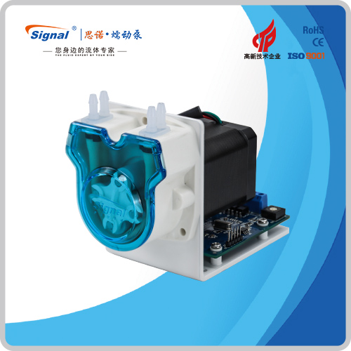 當小型蠕動泵啟動時,電機驅動輥輪旋轉,輥輪對安裝在泵殼內的彈性軟管進行壓擠。此時,軟管的某個點被輥輪壓縮,形成一個閉合的截止點。隨著輥輪的轉動,這個閉合的截止點也隨之移動,從而推動軟管內的流體向前流動。