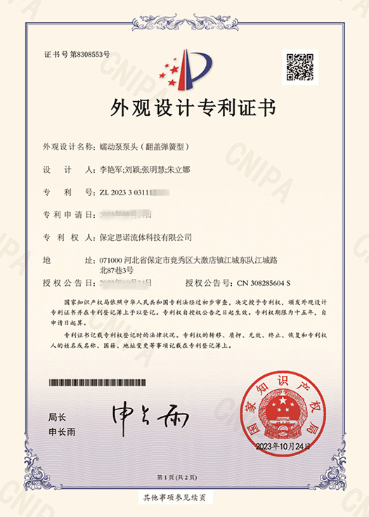 蠕動(dòng)泵泵頭翻蓋彈簧型外觀設(shè)計(jì)專利